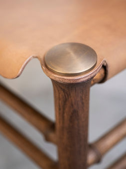 Rather than beginning with a brief, the project evolved from an informal exchange: a sketch found in an old notebook, a shared respect for process, and a mutual understanding of proportion and restraint. The structure is defined by a hand-turned, fluted dowel construction that supports a slung leather seat and back, secured with discreet solid brass caps. Each detail is resolved through iteration, not embellishment—refined slowly through making.