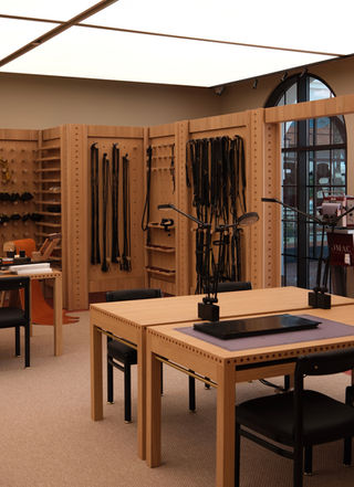 The Saddle Workshop, by contrast, foregrounds the physical nature of craft. Leather, brass, and utilitarian tools define the space, while precise detailing and controlled proportions ensure a refined and composed environment.