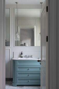 Untouched for more than three decades, the house required a full reinvention. The studio reworked every floor to suit modern family life and introduced a newly built basement — now home to a guest suite, wine cellar, cinema room and a gallery space created for the client’s art practice. This level sets the tone: functional, refined, and open to discovery.