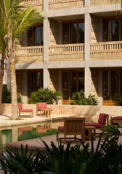 Designed by Jorge Hernandez de la Garza, the hotel’s architecture stays true to Grupo Habita’s signature aesthetic: raw concrete, clay tiles, exposed brick, and tropical wood. The interiors by Plantea Estudio are equally striking, with a captivating palette of deep wine reds, burnt oranges, and soft whites that radiate warmth and character.