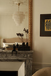 Her approach leaned into the spirit of Paris itself. “I went for a casual, relaxed look, ignoring tools of symmetry,” she explains. “I think Paris is all about collecting.” Much like the galleries and couture houses that inspire the city — she cites Schiaparelli’s headquarters as a reference — the apartment unfolds as a curated mix of eras and influences.