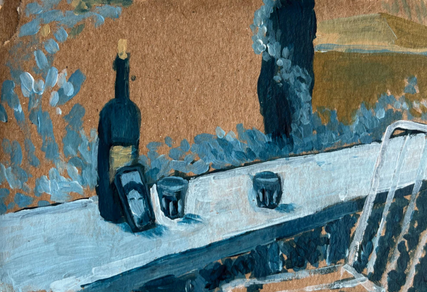 Setting a table, gathering around a table, long conversations, the small touches of people who make places into homes without the need for a table with four legs, the bottom of a wall in the shade of which you sit with two bagels in a bag and a glass of Raki... These moments are precious to me. I try to understand my vacillation between feeling comfortable in a place or not. Trying to understand myself is also a kind of mental gymnastics. I also question issues such as our class differences, our understanding of happiness, our views on life while making these paintings.