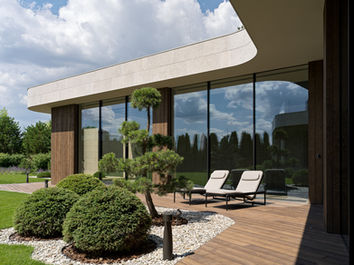This spacious villa in the Moscow region (also known as Villa Bionica) is the result of a fully collaborative design process led by interior designer Ekaterina Yakovenko. Working in close coordination with architects and engineers from the earliest planning stages, Yakovenko ensured a cohesive vision where architecture, interiors, and landscape merge seamlessly.